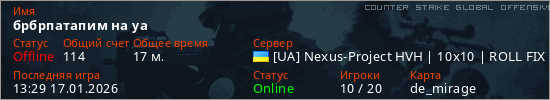 Играет на Counter Strike Global Offensive сервере. Страна: УкраинаПервый раз замечен 12:36 17.01.2026