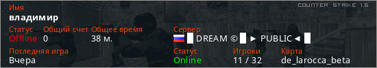 Последний раз был в сети Вчера Игрок с таким ником замечен на 24 серверах