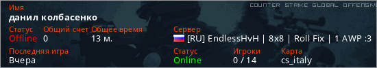 Последний раз был в сети Вчера Игрок с таким ником замечен на 25 серверах