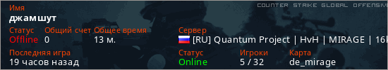 Играет на Counter Strike Global Offensive сервере. Страна: РоссияПервый раз замечен 17:25 13.03.2026