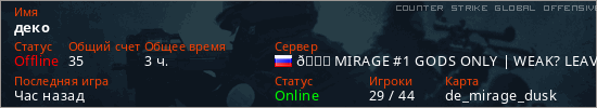 Играет на Counter Strike Global Offensive сервере. Страна: РоссияПервый раз замечен 22:29 11.01.2025