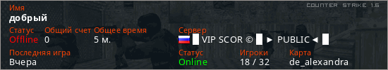 Последний раз был в сети Вчера Игрок с таким ником замечен на 35 серверах