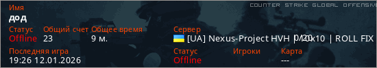 Играет на Counter Strike Global Offensive сервере. Страна: УкраинаПервый раз замечен 18:53 12.01.2026
