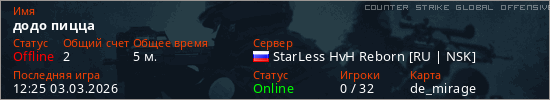 Играет на Counter Strike Global Offensive сервере. Страна: РоссияПервый раз замечен 12:19 03.03.2026