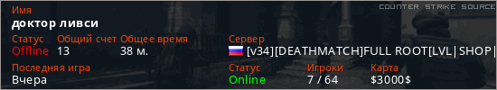 Последний раз был в сети Вчера Игрок с таким ником замечен на 12 серверах