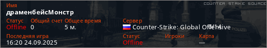 Играет на Counter Strike Source сервере. Страна: РоссияПервый раз замечен 15:56 24.09.2025