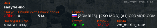 Играет на Counter Strike 1.6 сервере. Страна: РоссияПервый раз замечен 08:24 13.04.2026