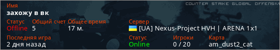 Играет на Counter Strike Global Offensive сервере. Страна: УкраинаПервый раз замечен 16:51 02.02.2026
