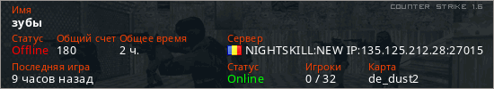 Последний раз был в сети 8 часов назад Игрок с таким ником замечен на 4 серверах