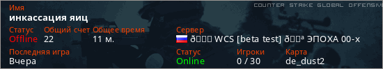 Играет на Counter Strike Global Offensive сервере. Страна: РоссияПервый раз замечен 00:35 07.03.2026