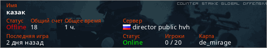 Играет на Counter Strike Global Offensive сервере. Страна: РоссияПервый раз замечен 21:30 27.03.2026