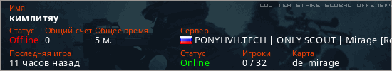 Играет на Counter Strike Global Offensive сервере. Страна: РоссияПервый раз замечен 22:05 27.03.2026