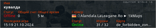 Играет на Counter Strike 1.6 сервере. Страна: ГерманияПервый раз замечен 15:11 21.10.2024