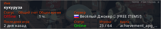 Играет на Team Fortress 2 сервере. Страна: РоссияПервый раз замечен 01:29 10.03.2026