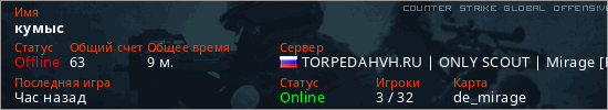 Играет на Counter Strike Global Offensive сервере. Страна: РоссияПервый раз замечен 21:28 21.03.2026