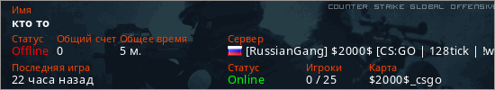 Играет на Counter Strike Global Offensive сервере. Страна: РоссияПервый раз замечен 17:46 10.04.2026