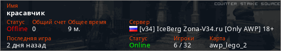 Играет на Counter Strike Source сервере. Страна: РоссияПервый раз замечен 10:01 23.02.2026