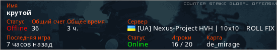 Последний раз был в сети 5 часов назад Игрок с таким ником замечен на 49 серверах