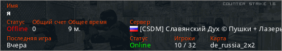 Последний раз был в сети Вчера Игрок с таким ником замечен на 47 серверах