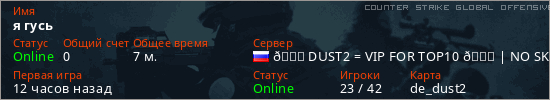 Играет на Counter Strike Global Offensive сервере. Страна: РоссияПервый раз замечен 21:50 25.01.2026