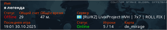 Играет на Counter Strike Global Offensive сервере. Страна: КазахстанПервый раз замечен 18:43 08.05.2025