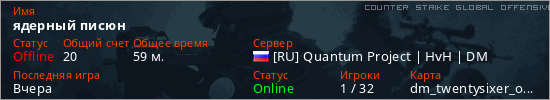 Играет на Counter Strike Global Offensive сервере. Страна: РоссияПервый раз замечен 15:31 05.04.2026