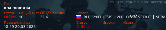 Играет на Counter Strike Global Offensive сервере. Страна: РоссияПервый раз замечен 09:41 25.02.2026
