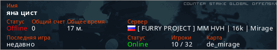 Играет на Counter Strike Global Offensive сервере. Страна: РоссияПервый раз замечен 18:35 20.03.2026