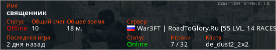 Последний раз был в сети 2 дня назад Игрок с таким ником замечен на 10 серверах