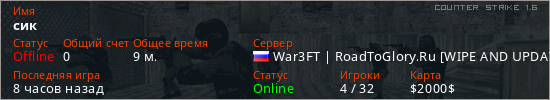Последний раз был в сети 4 часа назад Игрок с таким ником замечен на 8 серверах