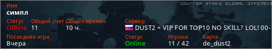 Играет на Counter Strike Global Offensive сервере. Страна: РоссияПервый раз замечен 12:51 08.03.2025