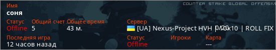 Играет на Counter Strike Global Offensive сервере. Страна: УкраинаПервый раз замечен 18:25 07.02.2026