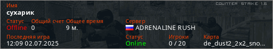 Играет на Counter Strike 1.6 сервере. Страна: РоссияПервый раз замечен 11:36 02.07.2025