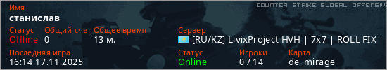 Играет на Counter Strike Global Offensive сервере. Страна: КазахстанПервый раз замечен 15:31 16.11.2025