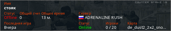 Играет на Counter Strike 1.6 сервере. Страна: РоссияПервый раз замечен 19:48 21.11.2025