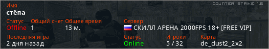 Последний раз был в сети 2 дня назад Игрок с таким ником замечен на 14 серверах