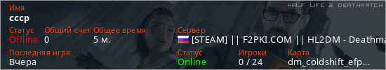 Последний раз был в сети Вчера Игрок с таким ником замечен на 32 серверах