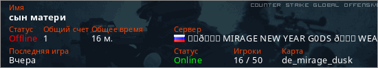 Последний раз был в сети Вчера Игрок с таким ником замечен на 8 серверах