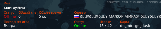 Играет на Counter Strike Global Offensive сервере. Страна: РоссияПервый раз замечен 00:54 11.04.2026