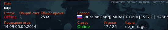 Играет на Counter Strike Global Offensive сервере. Страна: РоссияПервый раз замечен 10:55 16.06.2024