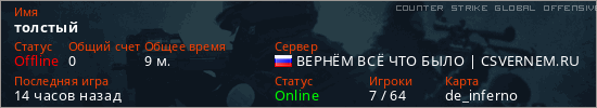 Играет на Counter Strike Global Offensive сервере. Страна: РоссияПервый раз замечен 14:40 13.03.2026
