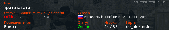 Последний раз был в сети Вчера Игрок с таким ником замечен на 3 серверах