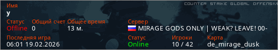 Играет на Counter Strike Global Offensive сервере. Страна: РоссияПервый раз замечен 14:29 18.02.2026