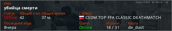 Последний раз был в сети Вчера Игрок с таким ником замечен на 5 серверах