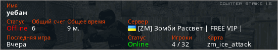 Играет на Counter Strike 1.6 сервере. Страна: УкраинаПервый раз замечен 12:31 13.04.2026