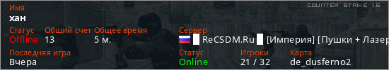 Последний раз был в сети Вчера Игрок с таким ником замечен на 15 серверах