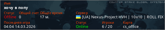 Играет на Counter Strike Global Offensive сервере. Страна: УкраинаПервый раз замечен 23:30 28.02.2026