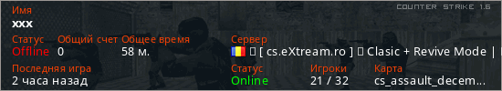 Последний раз был в сети Час назад Игрок с таким ником замечен на 32 серверах