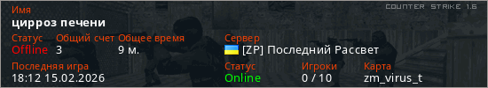 Играет на Counter Strike 1.6 сервере. Страна: УкраинаПервый раз замечен 17:39 15.02.2026