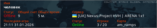 Играет на Counter Strike Global Offensive сервере. Страна: УкраинаПервый раз замечен 21:09 31.01.2026
